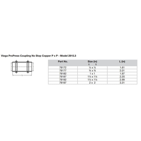 ProPress 1-1/2" Copper Coupling without Stop - Double Press Connection - Smart Connect Technology