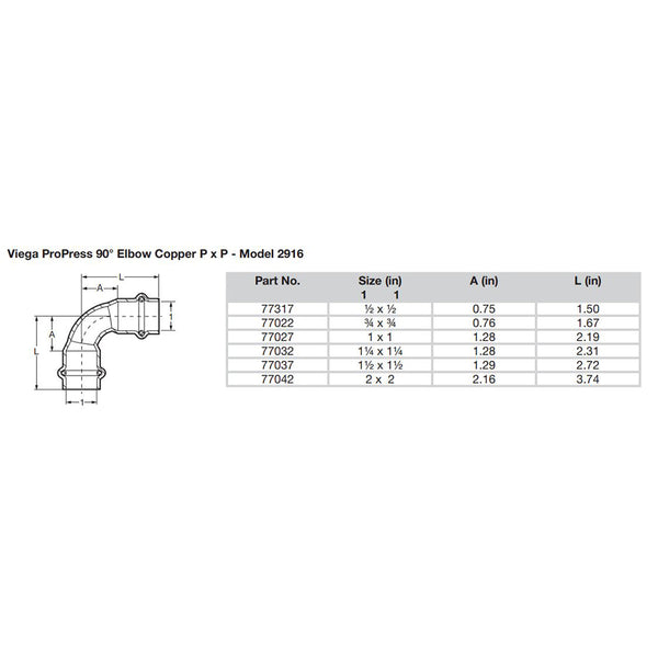 ProPress 3/4" - 90° Copper Elbow - Double Press Connection - Smart Connect Technology